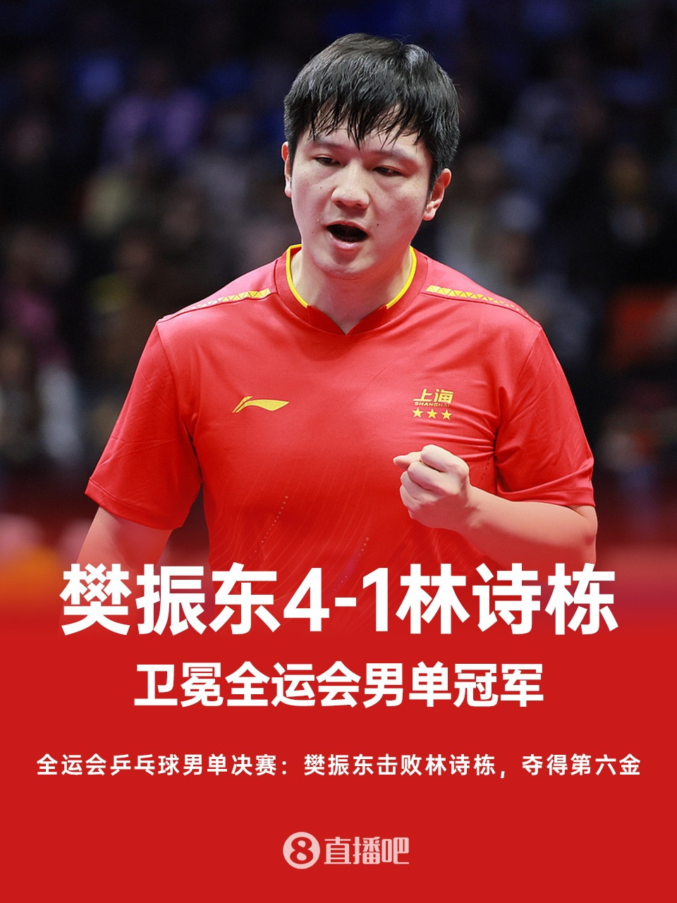 直播吧11月16日讯 全运会乒乓球男单金牌赛,卫冕冠军樊振东vs首进决赛的林诗栋。