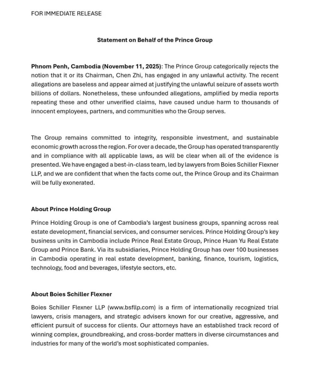2025年10月14日,美国司法部与财政部联合宣布,柬埔寨太子集团被认定为“国际跨国犯罪组织”,并对其创始人陈志及17名核心成员发出全球通缉令。