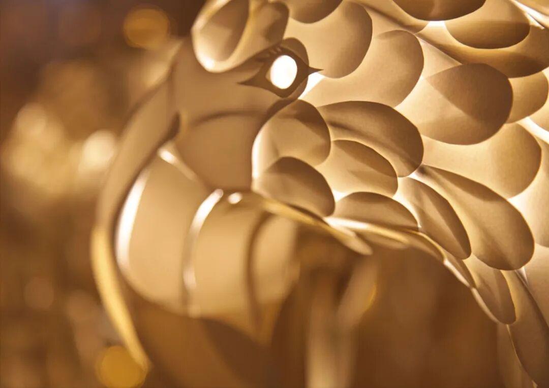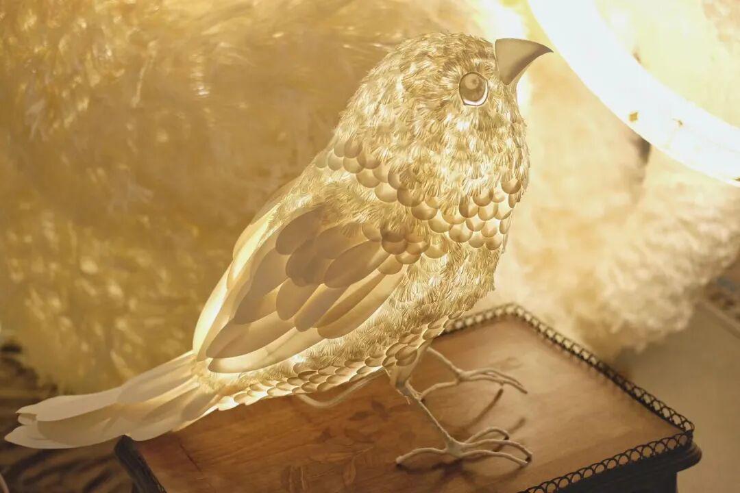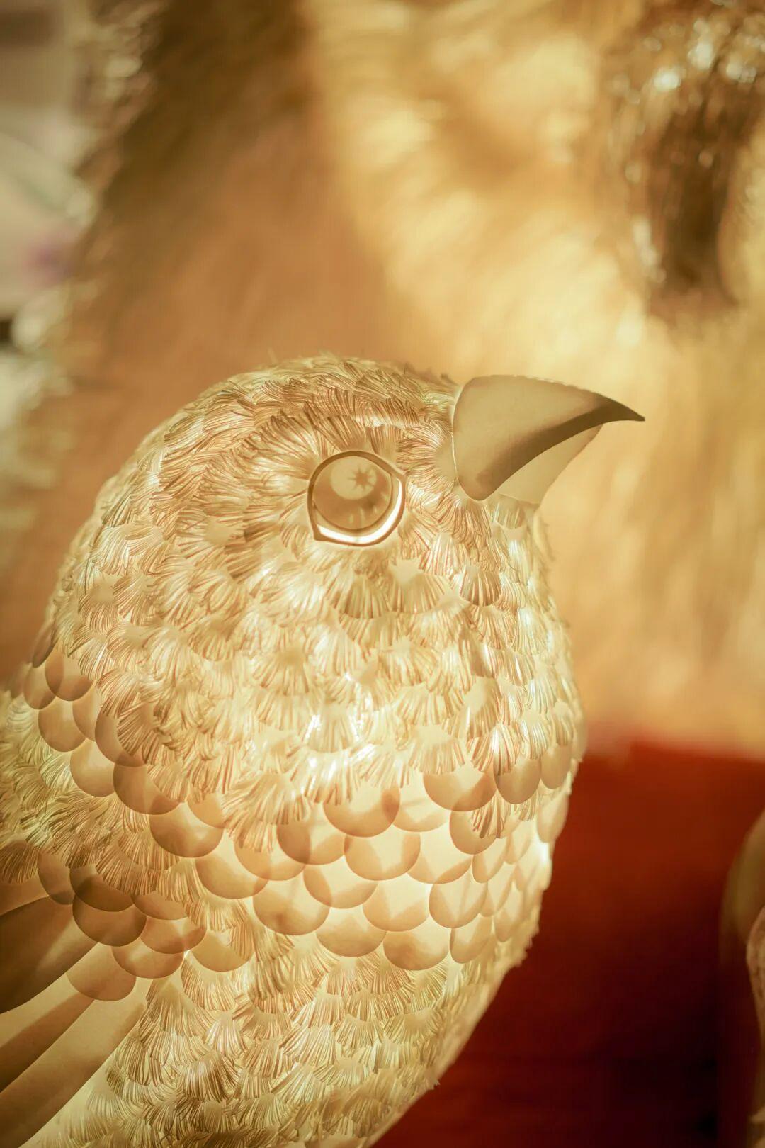 艺术家温秋雯创作的纸雕灯光装置作品《知更鸟》