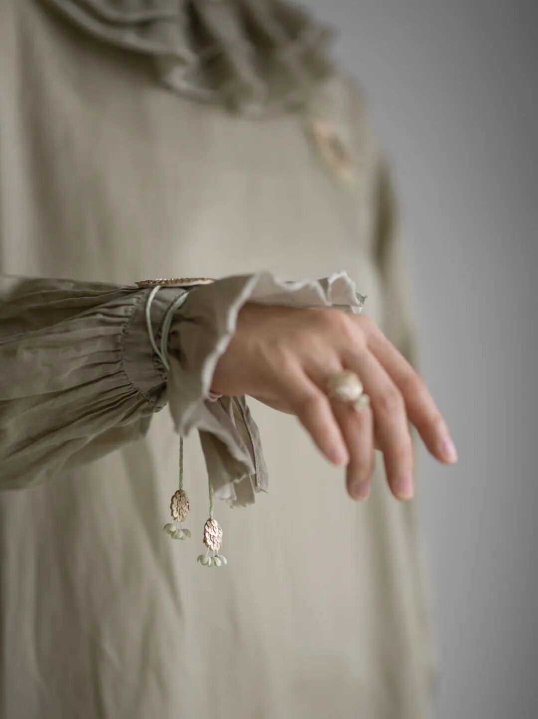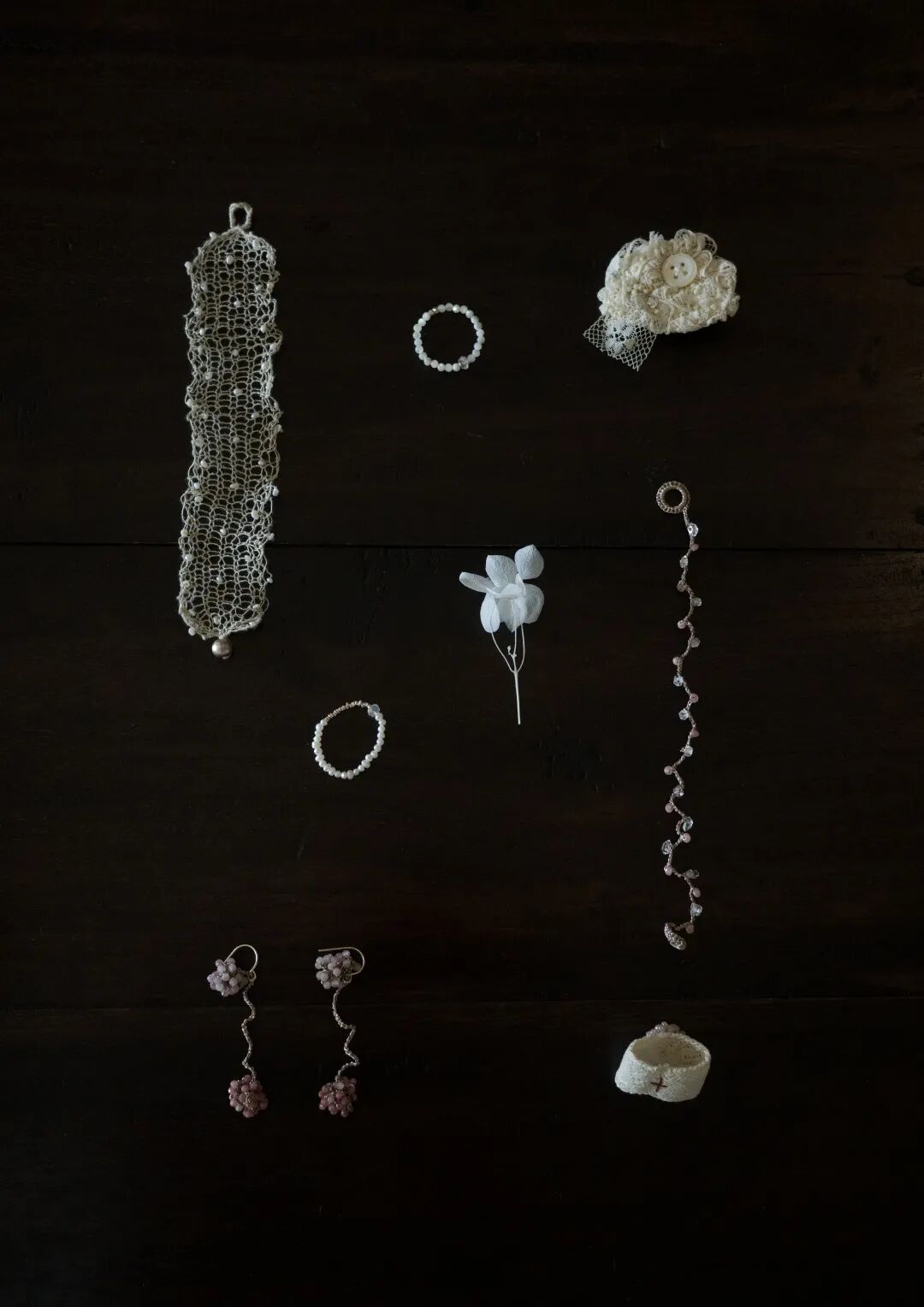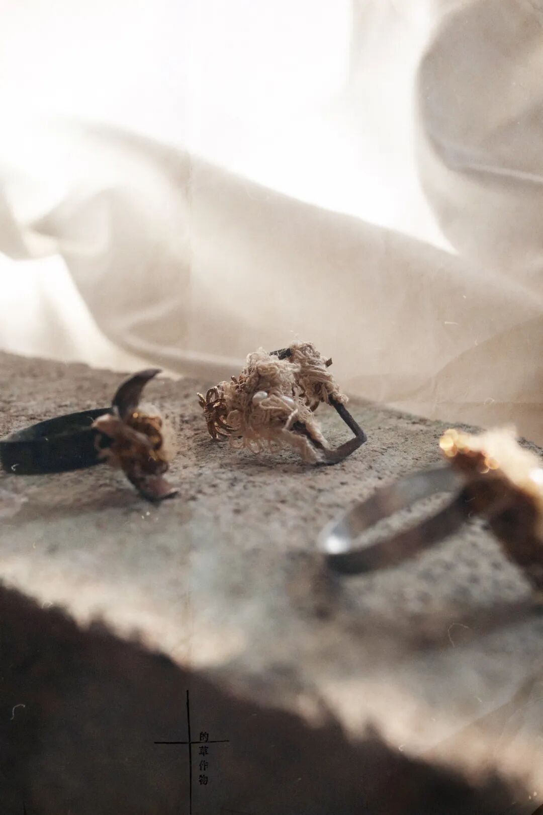 使用钩织的金属、纤维、捕捉自然界美的残影,让佩戴成为自我缝补的过程。强调配饰作为“物”本身的艺术性和感知性,针脚是柔软的盔甲,是为情绪边界打造的物品,是疗愈,是自我取悦。