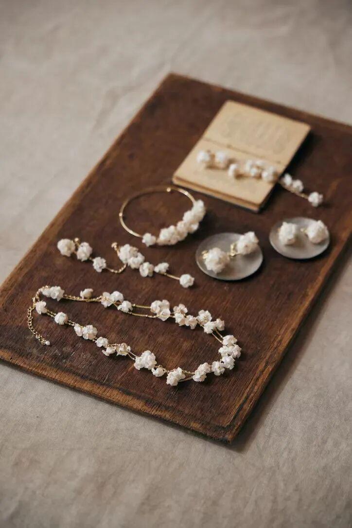 手作品牌 Autumn Tea 诞生于2021年秋天,探索材质碰撞的无限可能。最初以树脂、水彩手绘和天然石的搭配为主。2023年末,开始自己设计制作黄铜配件,逐渐勾勒出更成熟、更稳定的风格轮廓。如今,标志性的手工黄铜配件与水晶、串珠交织,既承袭了手作的温度,又展现出饰品独特的美感。
