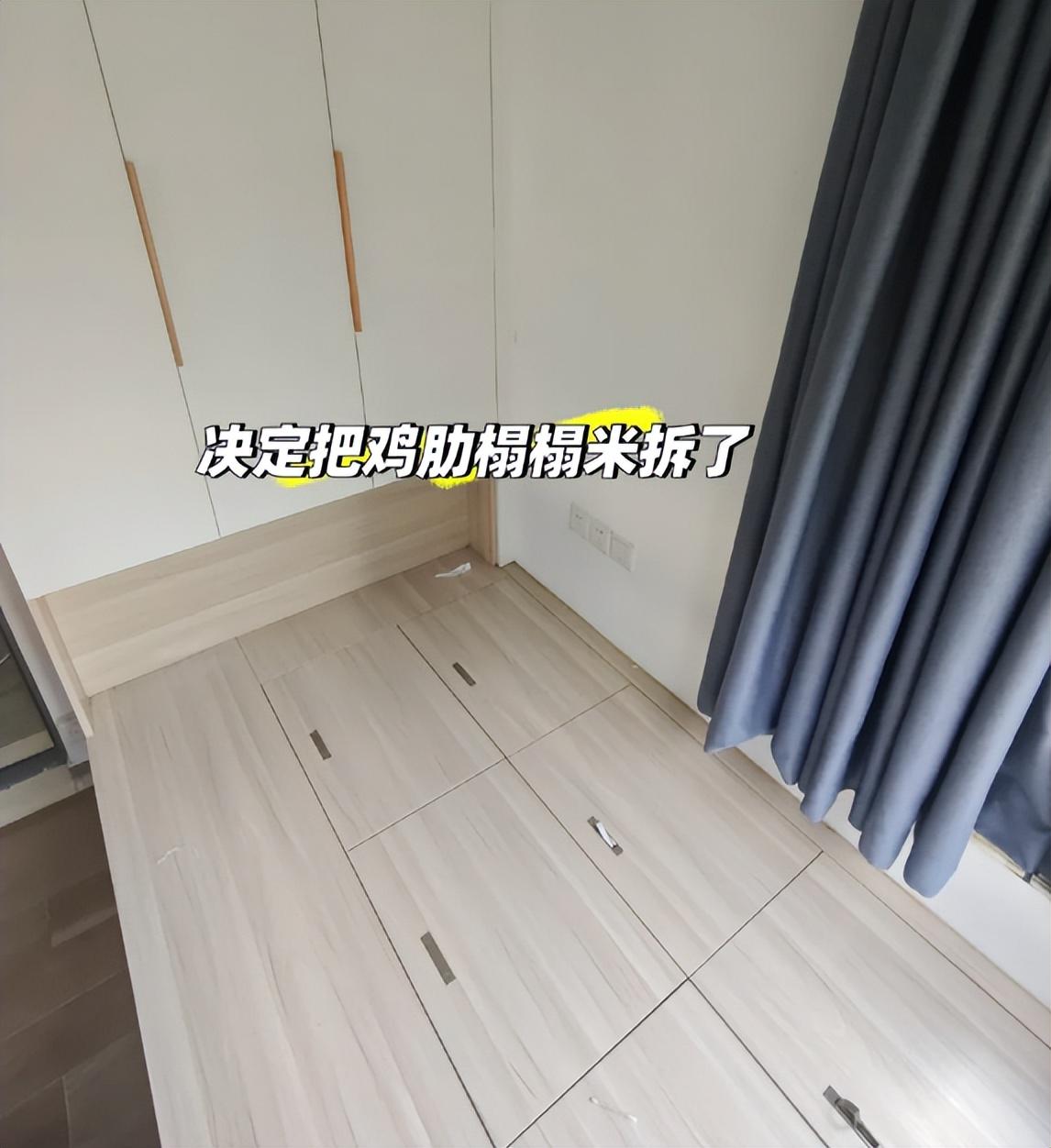 装了榻榻米后,原本面积很小的卧室,现在更小了,住也住不舒服,收纳,收纳搞的也不好。